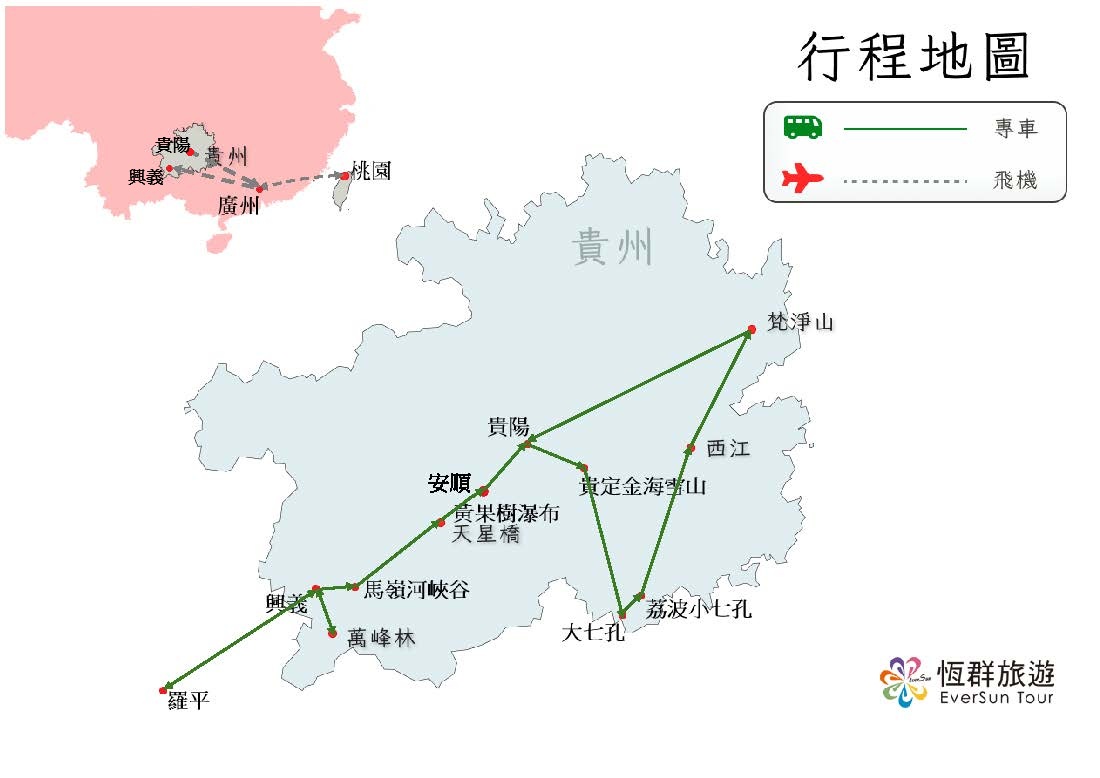 去程:桃園/廣州/興義,回程:貴陽/廣州/桃園。