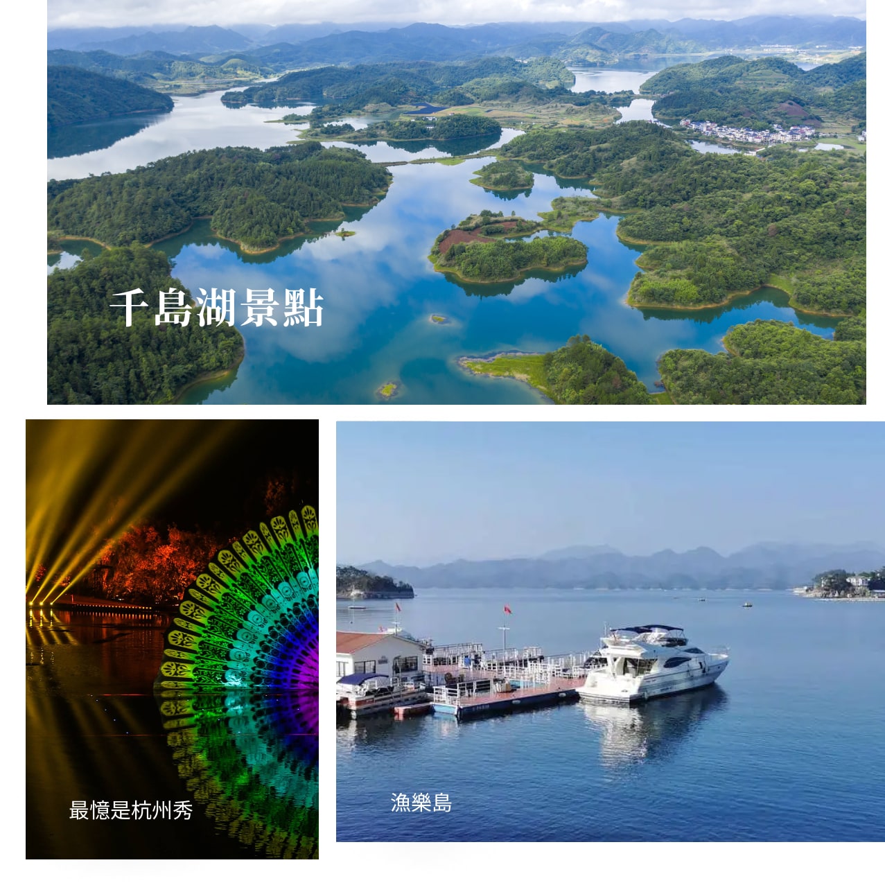 ★【千島湖】騎龍巷、船遊千島湖中心湖區、梅峰島(纜車上下)、漁樂島、龍山島。