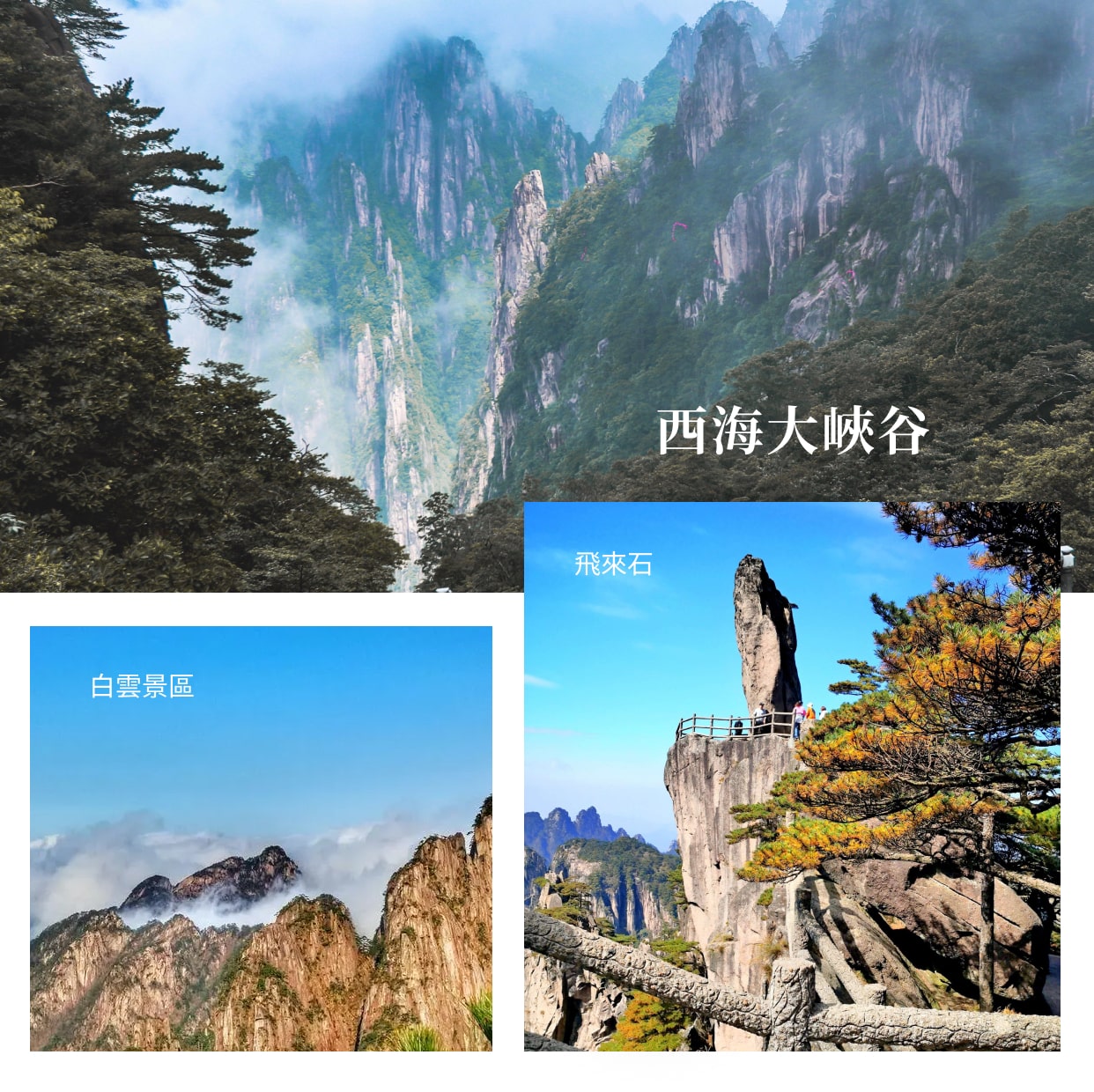 黃山(西海大峽谷含單程觀光纜車、白雲景區、光明頂、飛來石)