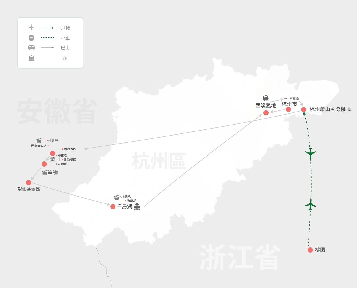 早餐:酒店內 午餐:中式杭幫菜風味 晚餐:機上簡餐
