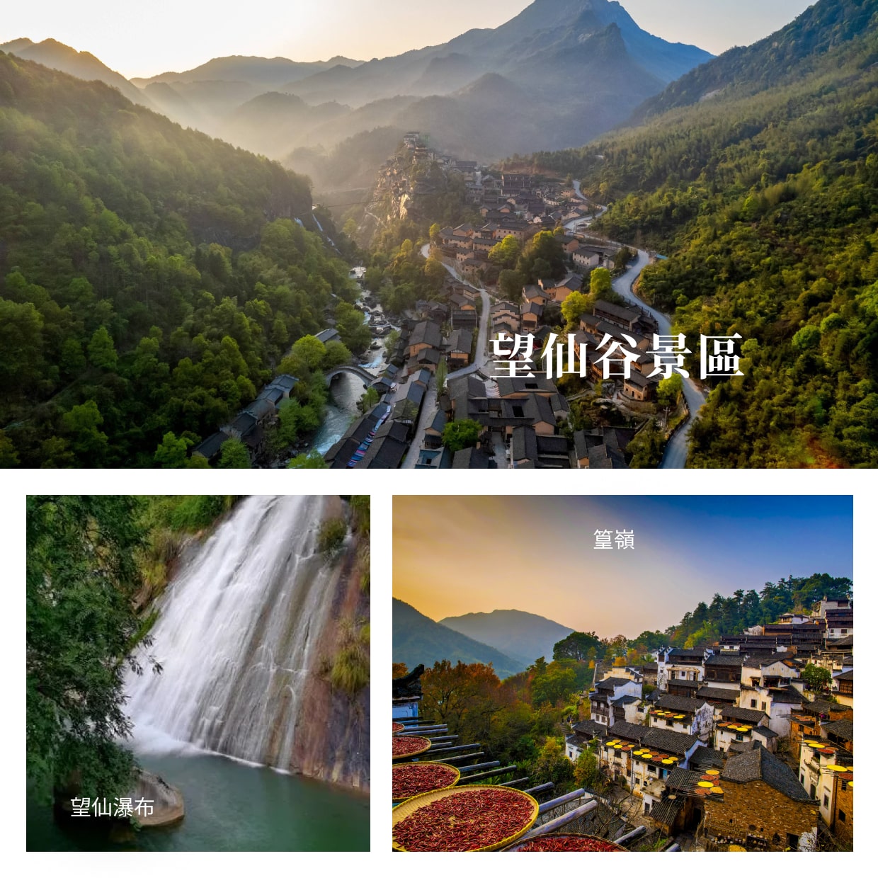 ★【望仙谷景區】依山形而建、沿峽谷成街,以棧道串聯的模式,鑲嵌在懸崖之上,【高空玻璃棧道】【望仙瀑布】【許願橋】【美食街】【岩鋪】等都完全融入了山川和峽谷的視覺流線中。