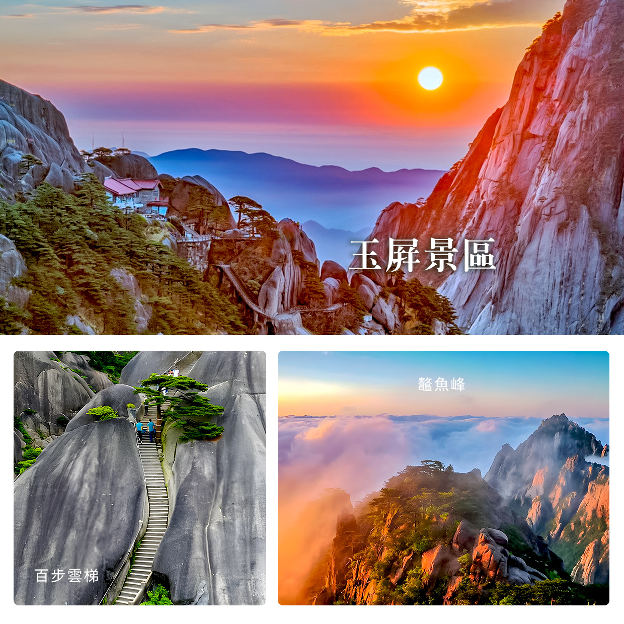上午:鼇魚峰、鼇魚洞、百步雲梯、玉屏景區、迎客松
