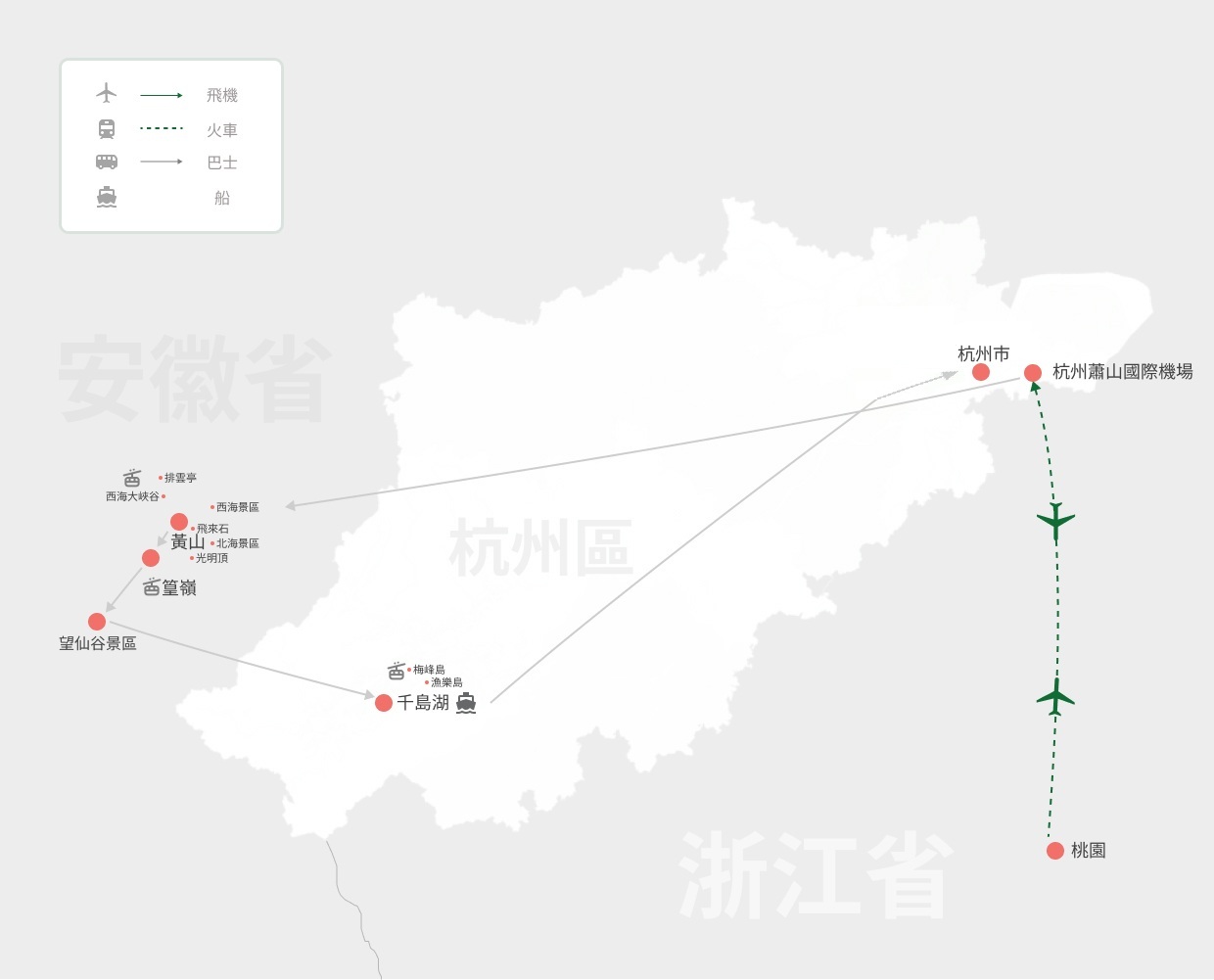 | D5 | 黃山 | 黃山- 上午:鼇魚峰、鼇魚洞、百步雲梯、玉屏景區、迎客松 | 早:酒店 午:山上自助RMB78 晚:山上自助RMB160 | 黃山山上 4★酒店玉屏樓賓館或同級 |