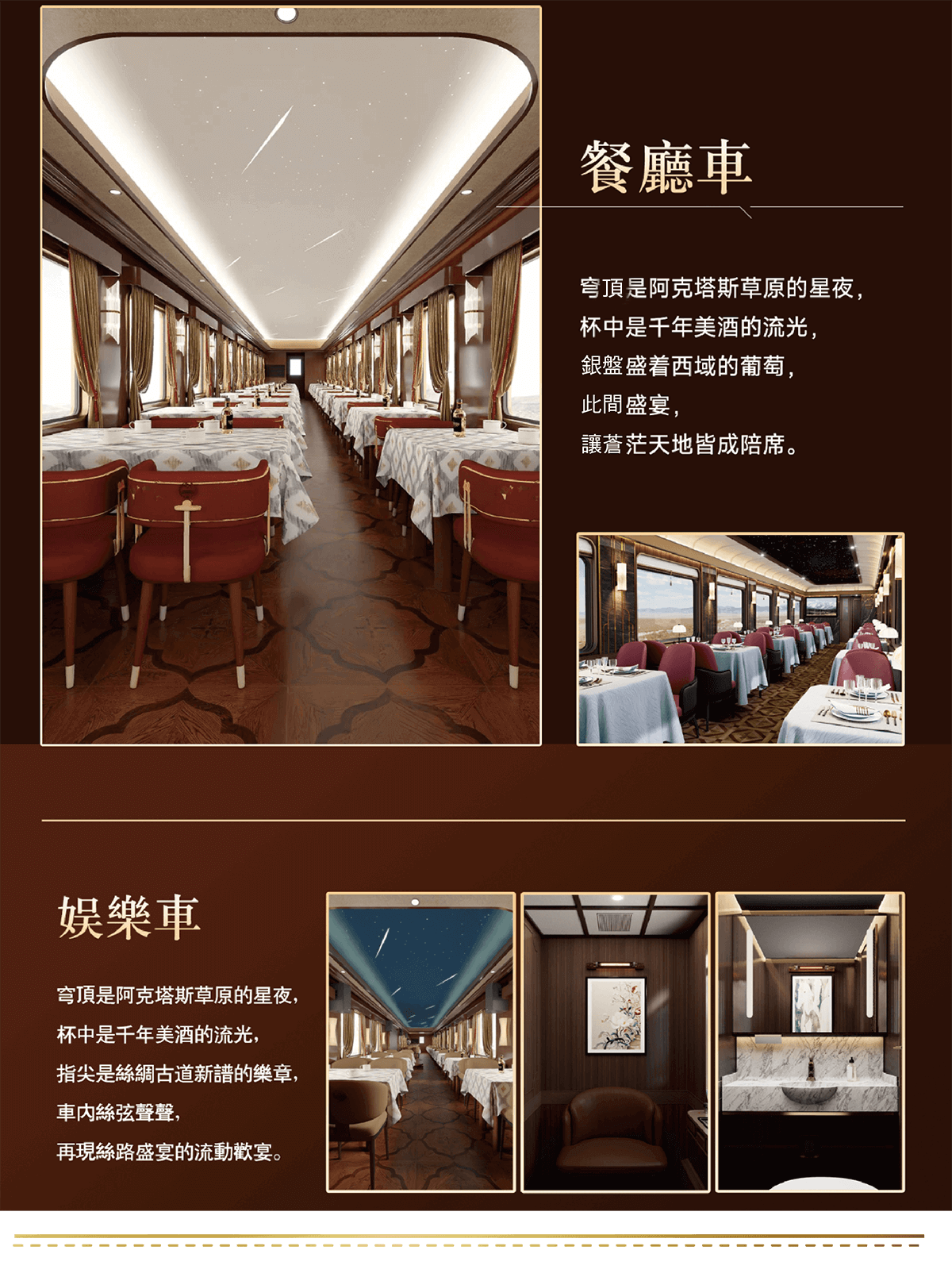 【新東方快車】是高端旅遊列車,“坐著火車遊新疆” 您才能真正享受南北疆的美。2026年第三代新東方快車多種房型滿足您與家人的多元化需求!車體升級,服務升級,品質升級! 選擇搭專列:讓旅行從舟車勞頓變成享受沿途風景。清晨推開窗,看著天邊亮起的新疆晨光;晚上在車廂輕鬆聊天,隔天醒來就到下一站。 不用拉行李、不用趕路,也不會錯過美景,旅途控管:每天流暢無縫轉接、不塞、不趕,安全、舒適、恰到好處。