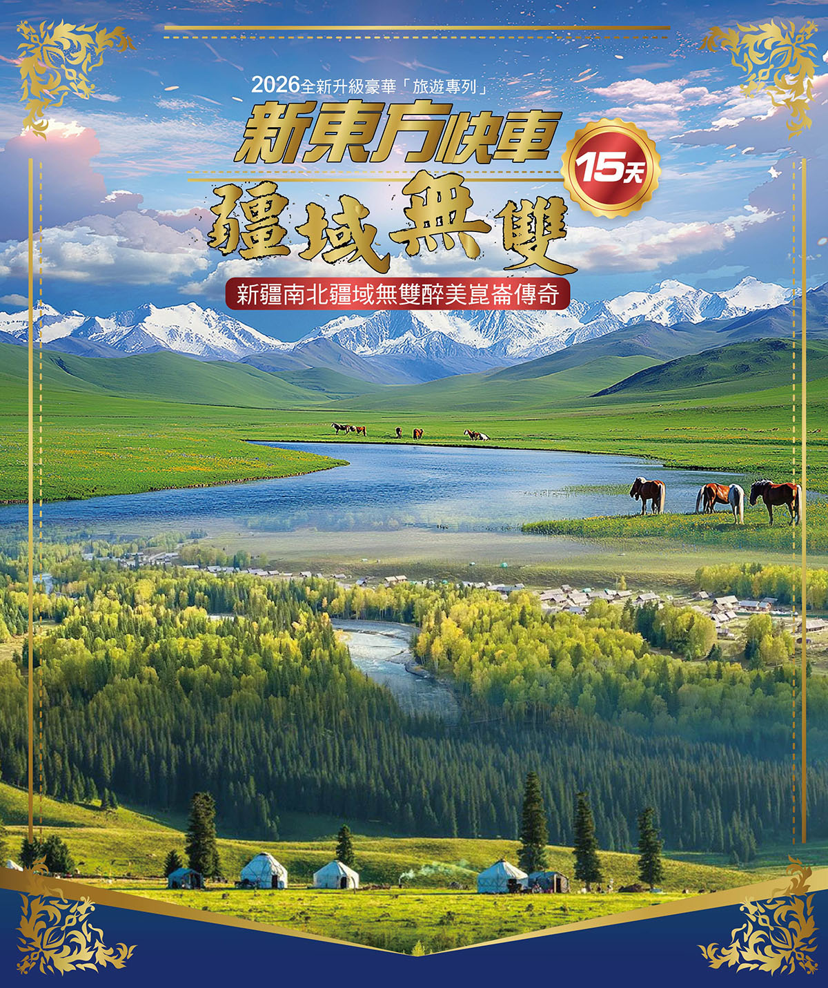 新(新)東方快車~2026全新升級 豪華「旅遊專列」-新疆南北疆域無雙醉美昆侖傳奇15天