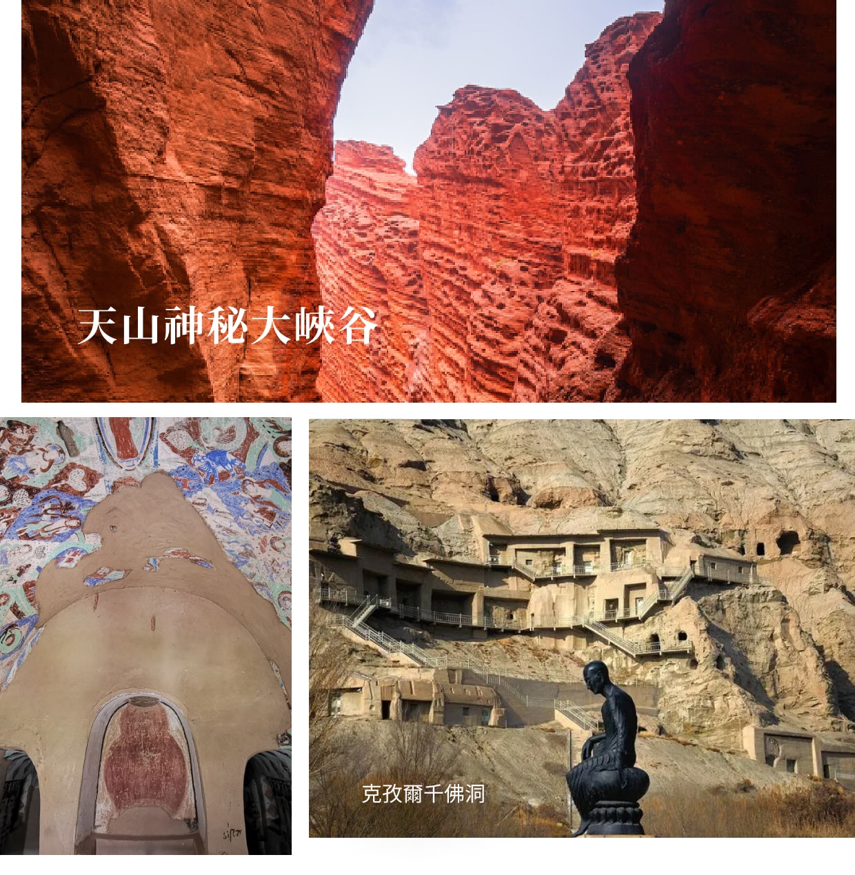 【上午】新東方快車抵達庫車後前往遊覽【天山神秘大峽谷】(遊覽約1.5 小時)。天山神秘大峽谷集人間峽谷之妙,兼天山奇景之長,蘊萬古之靈氣,融神、奇、險、雄、古、幽為一體,景異物奇,令人神往,是古絲綢之路黃金旅遊線上的一顆璀璨的明珠。