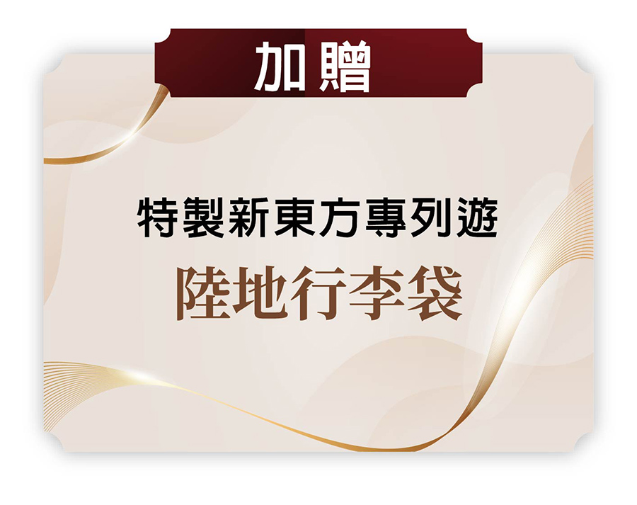 住宿:新東方快車(璽悅金鑽房2人 或 間) 或同等級