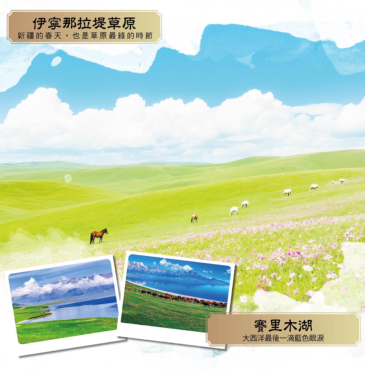 從南疆到北疆,新東方串聯,湖泊森林/高原雪山/草原花海/戈壁沙漠/民風民俗/人文古蹟,旅遊途中各地接待,更顯尊貴