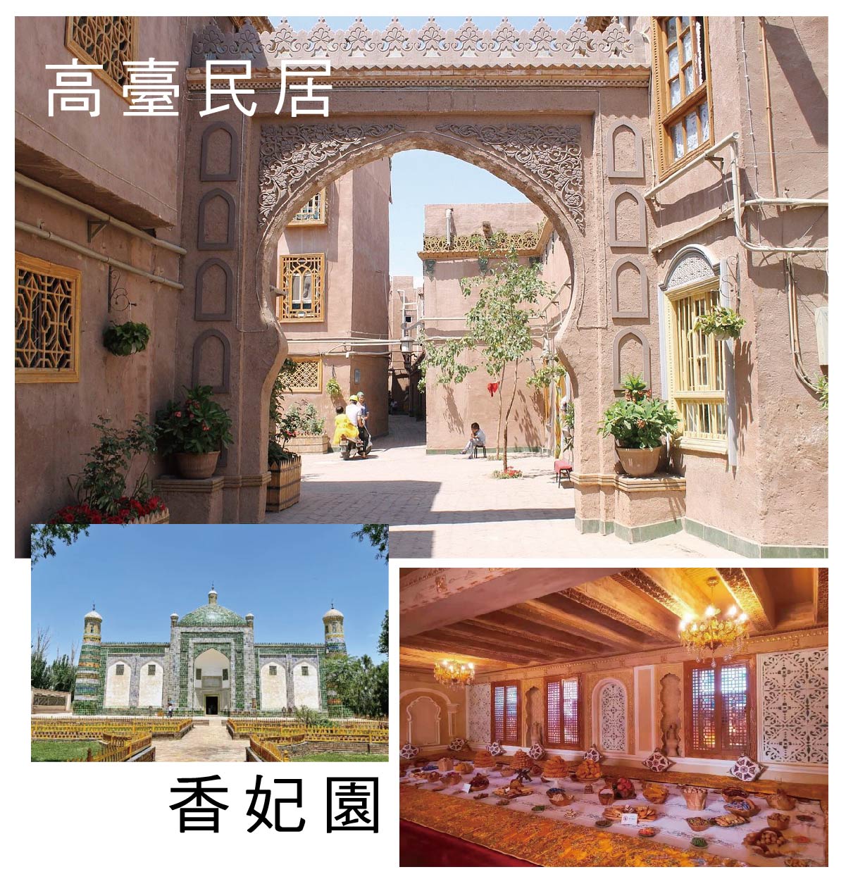 【下午】參觀【香妃園】(車程約0.5H,遊覽約3H)。香妃園景區占地300 餘畝,核心建築香妃墓始建於1640 年。2014 年啟動文化主題改造工程,景區以香妃文化為主題,通過復原故居、民俗婚禮體驗、《歡樂香妃》歌舞劇等20 余處文化展示項目,展現維吾爾族歷史文化和民族團結主題。