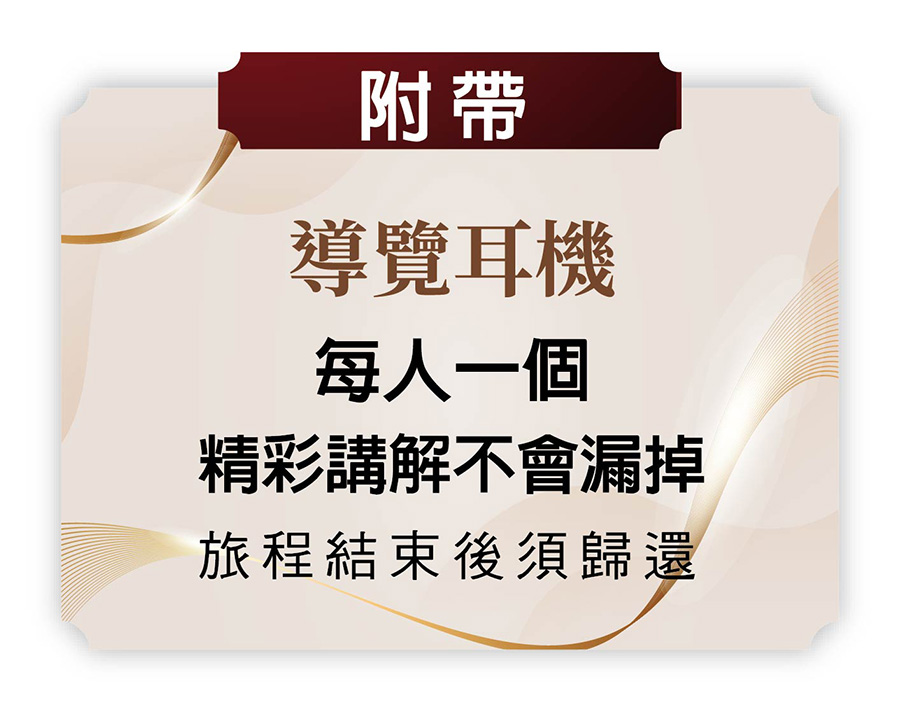 4.門票:依行程所列(以出發前說明會為準)。